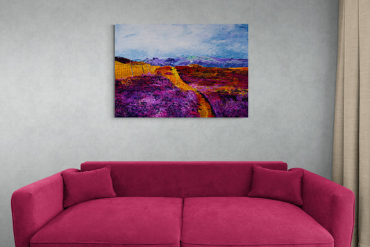 Brightly coloured and vivid landscapes rendered in textured acrylic paint from the...