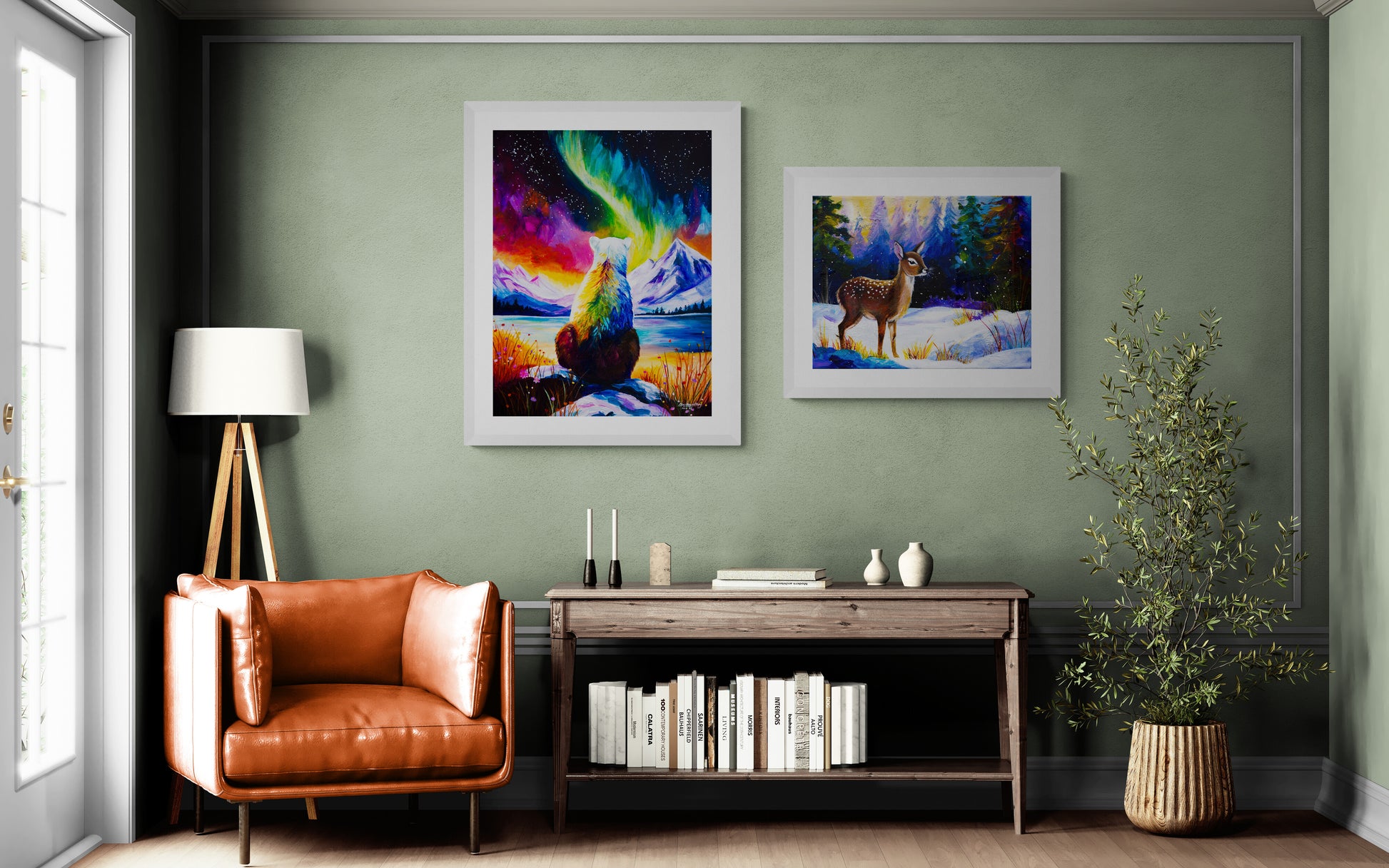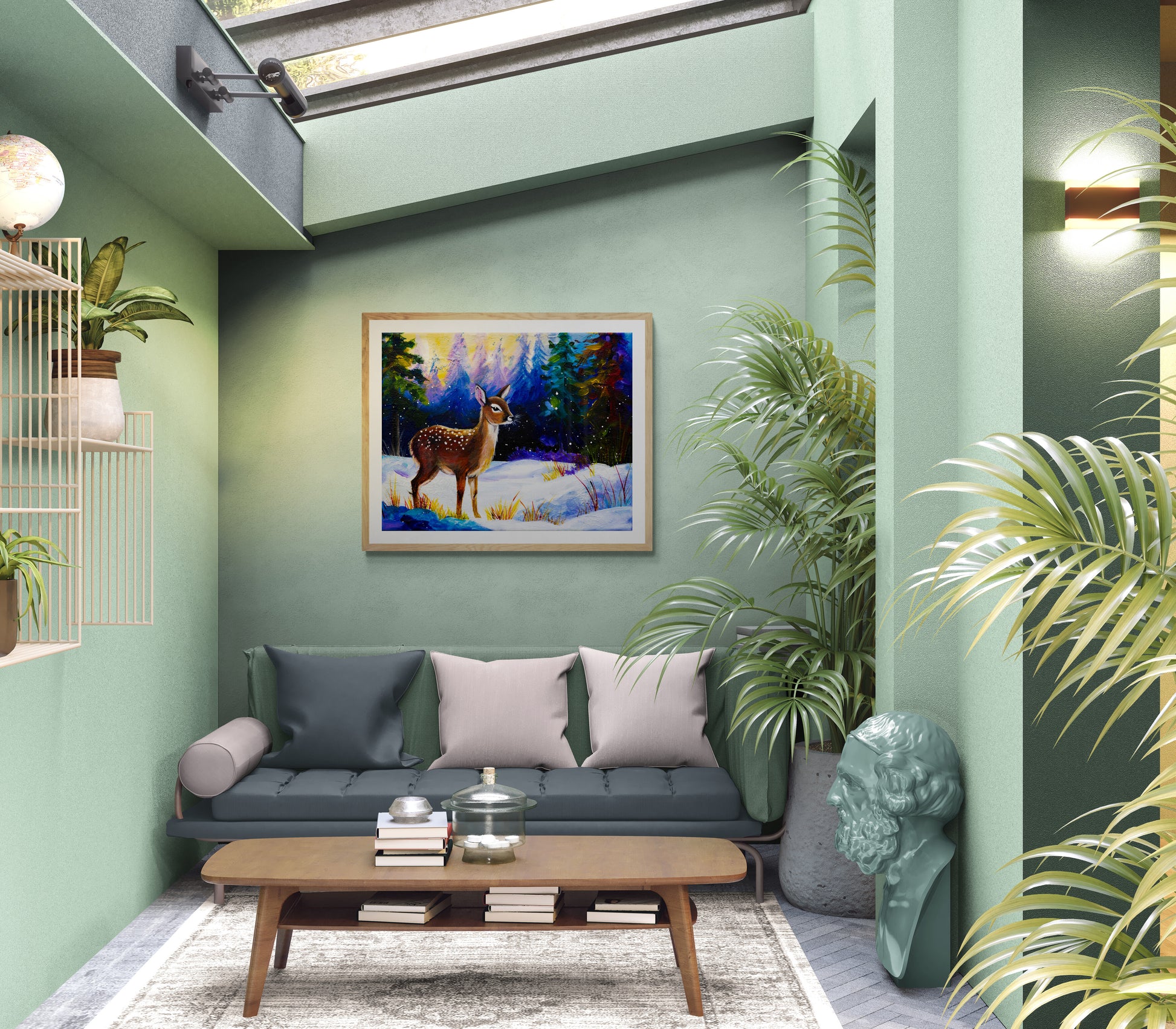 This is Fawn, a young deer out in the magical, snowy woodland. Painted in vibrant, cheerful colours, she's sure to liven any room and bring a smile to your face.