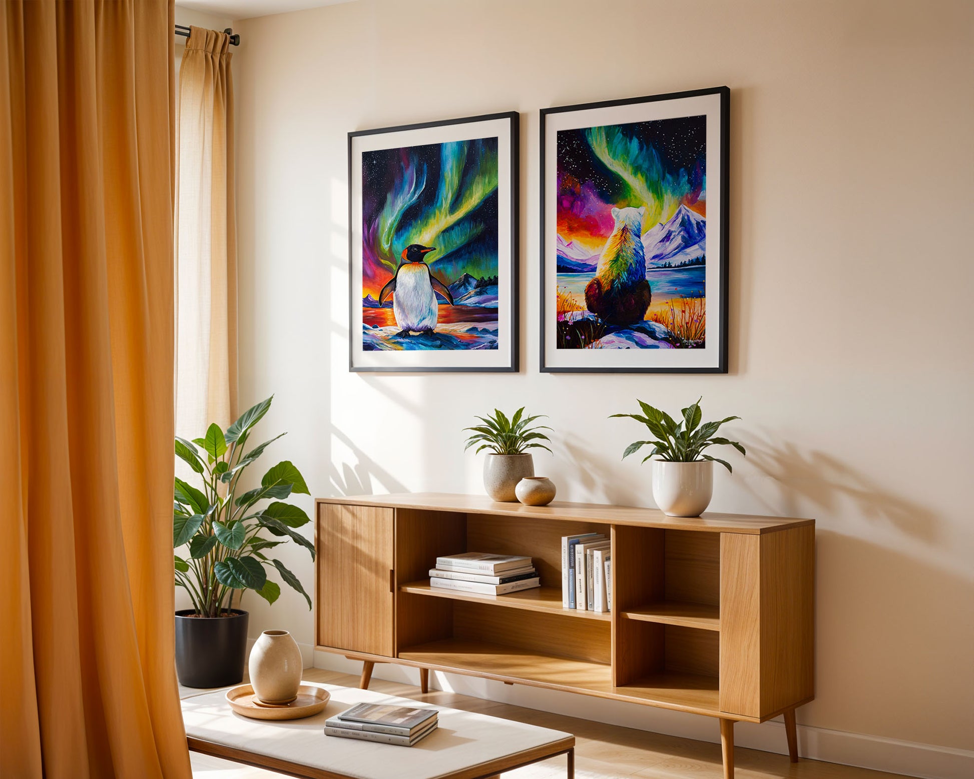 Although it's unlikely to witness the Aurora Australis at the same time as the sunset, the vivid rainbow colours in this painting inspire and bring joy. King Penguins are a thriving species, despite the harsh living conditions. Smaller than an Emperor Penguin, isn't Ray just a gorgeous happy chappy?
