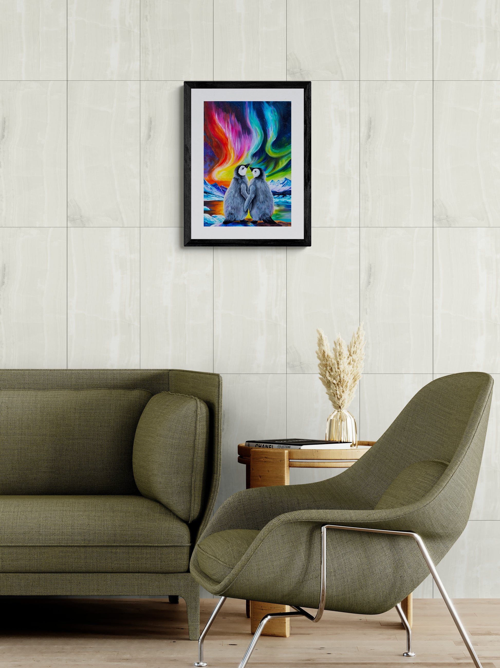 One of these emperor penguin chicks is a protector too. Dragging the younger sibling out of their slumber to admire the Aurora Australis, sharing in the beauty of their isolated environment.